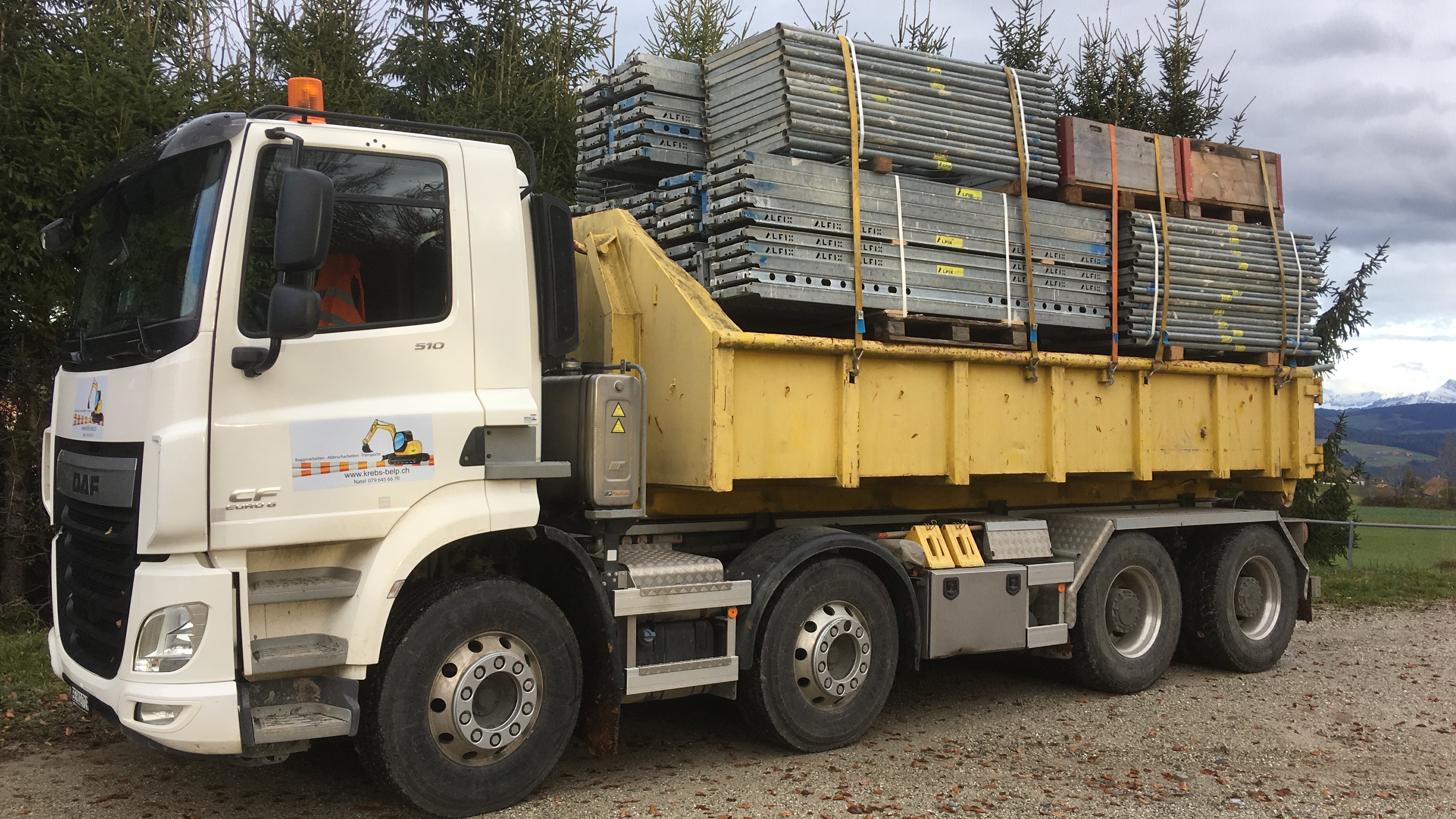 Wir haben ein leichtes Aluminium-Gerüst. Dies ist für verschiedenste Fassadentätigkeiten geeignet.